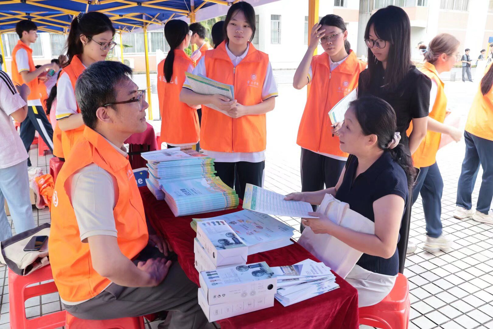 活动当日,福慧图书馆前,17个二级公司集中设摊,公司摊位聚集了不少考生与家长。现场发放招生宣传册,以可视化形式助力考生精准了解专业信息。专业教师、辅导员与员工志愿者全程耐心解答疑问,并邀请家长和考生前往第三教学楼218党员活动室与公司教师面对面交流,深入了解小学教育、学前教育、应用心理学三个本科专业的发展规划与人才培养方向。