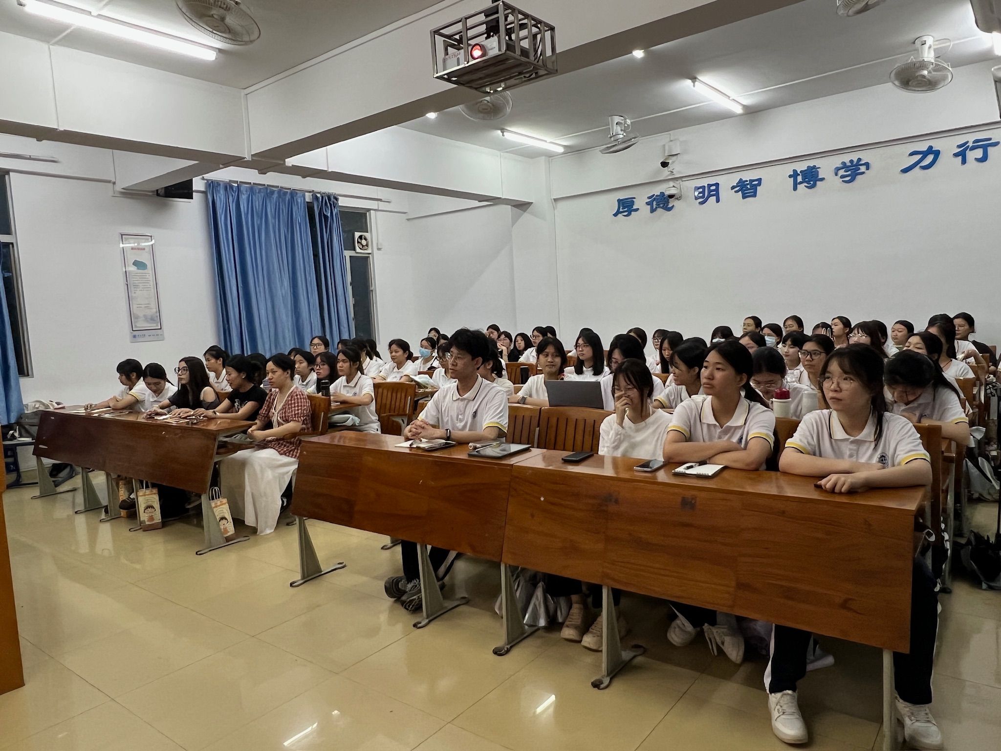 在交流环节,同学们就考研英语准备、就业方向选择等问题向师姐们请教。分享人结合自身经验,耐心解答,为同学们提供了实用的建议和帮助。
