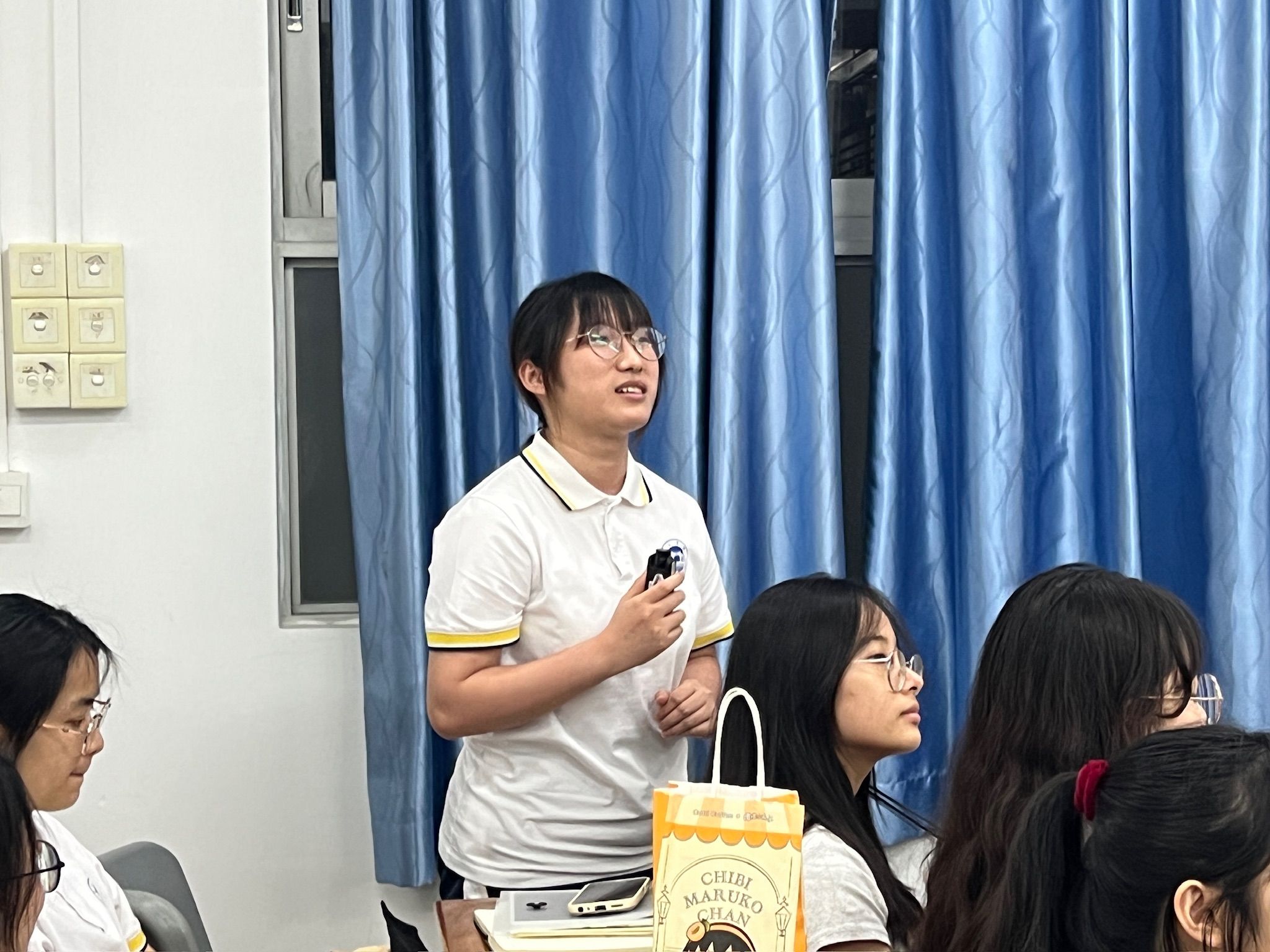 在对外交流学习分享环节,周荩跞同学分享了在波兰密兹凯维奇大学访学一学期的经历,她感受到了不同的文化氛围和教育方式,学会了独立面对问题,提升了思维的开放性和灵活性,结识了世界各地的朋友。她鼓励同学们抓住对外交流的机会,在探索世界的过程中实现自我成长。