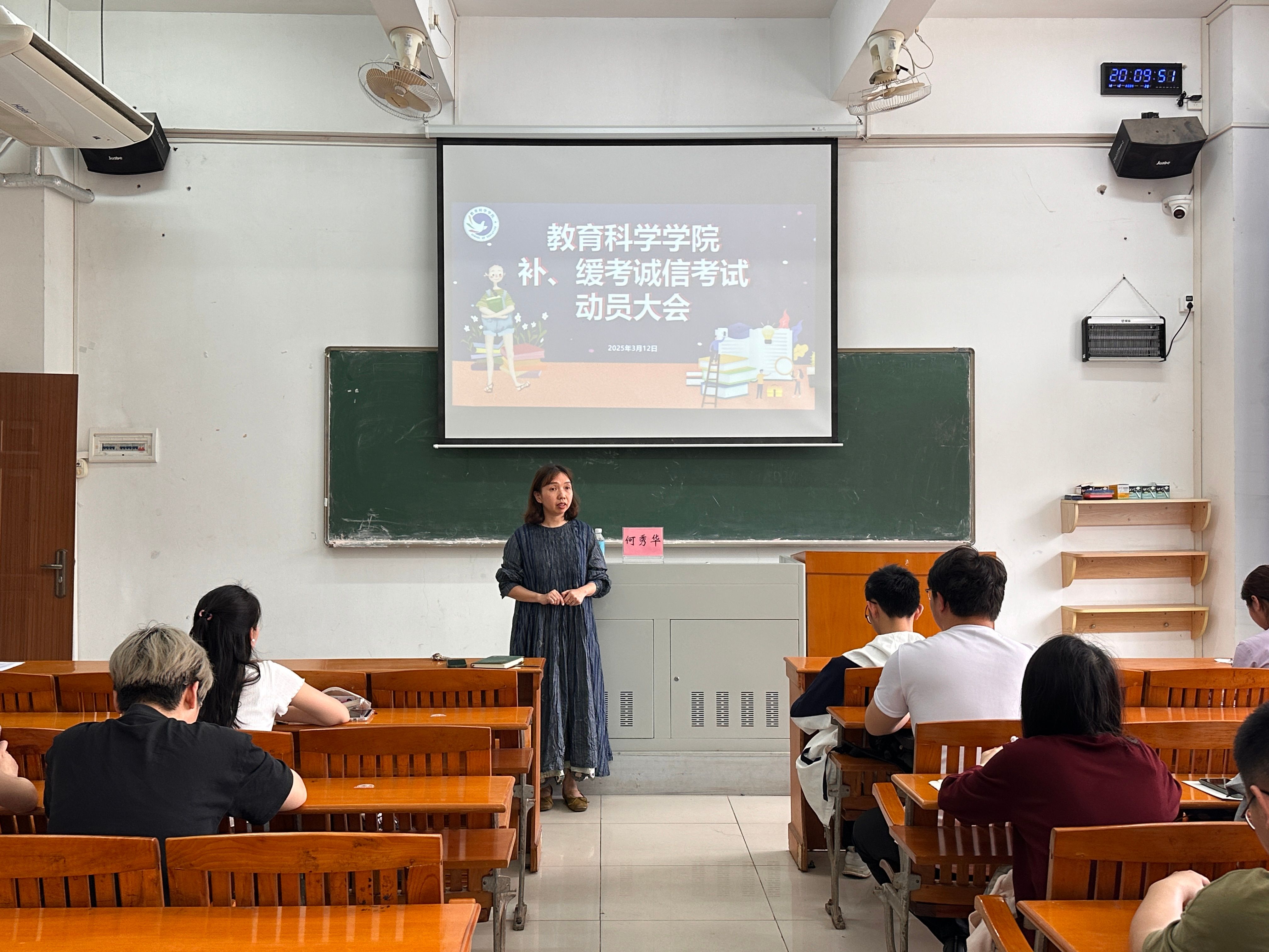 为加强学风建设,严肃考风考纪,2025年3月12日下午16:15分,公司于第三教学楼106室召开补考、缓考员工诚信考试动员大会。公司党委副书记何秀华、辅导员夏长洪出席,本次需要补考、缓考的员工参加会议。