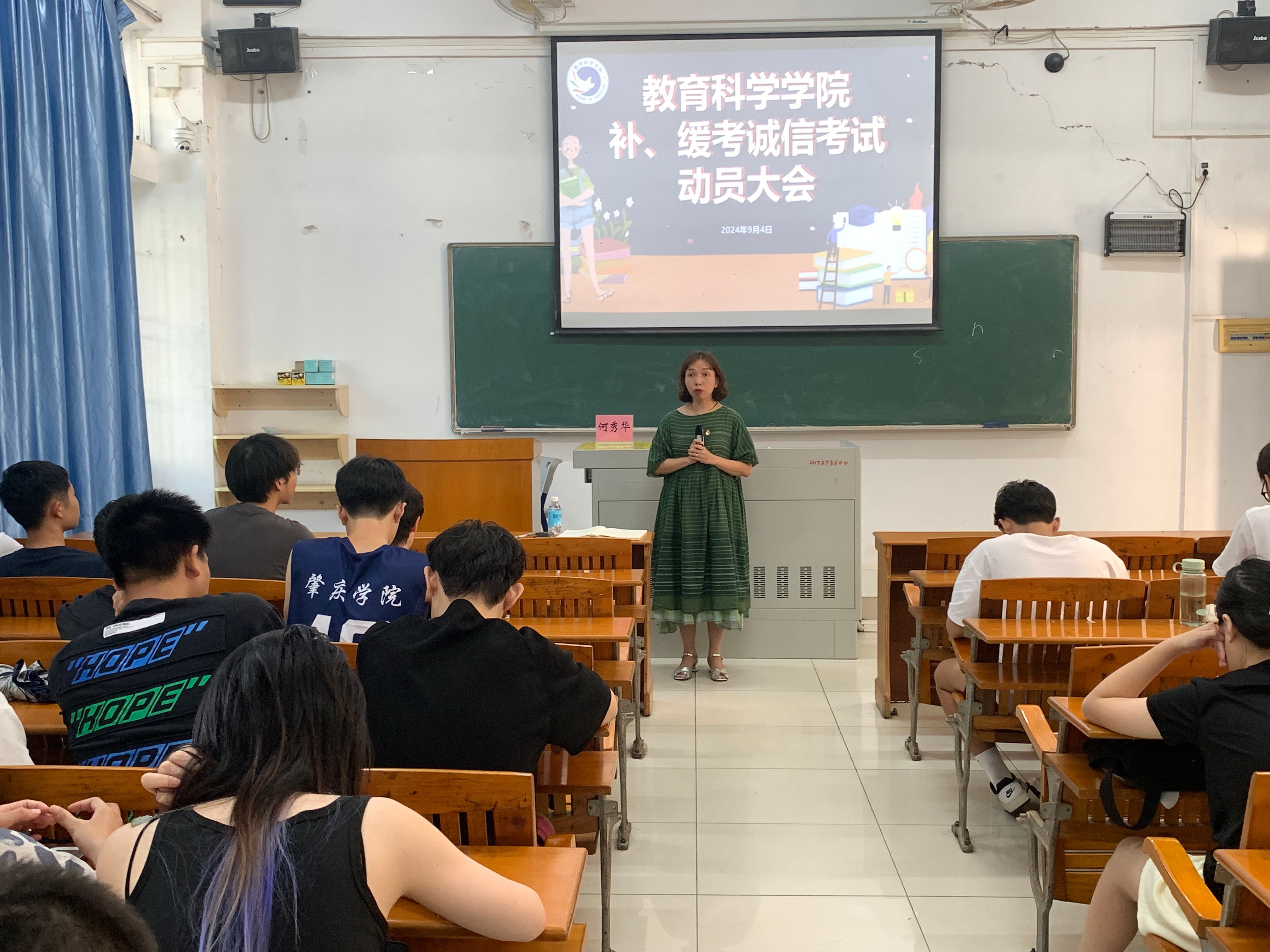 为加强学风建设,严肃考风考纪,2024年9月4日下午16点15分,公司于第三教学楼101室召开补考、缓考员工诚信考试动员大会。公司党委副书记何秀华、辅导员夏长洪出席,本次需要补考、缓考的员工参会。