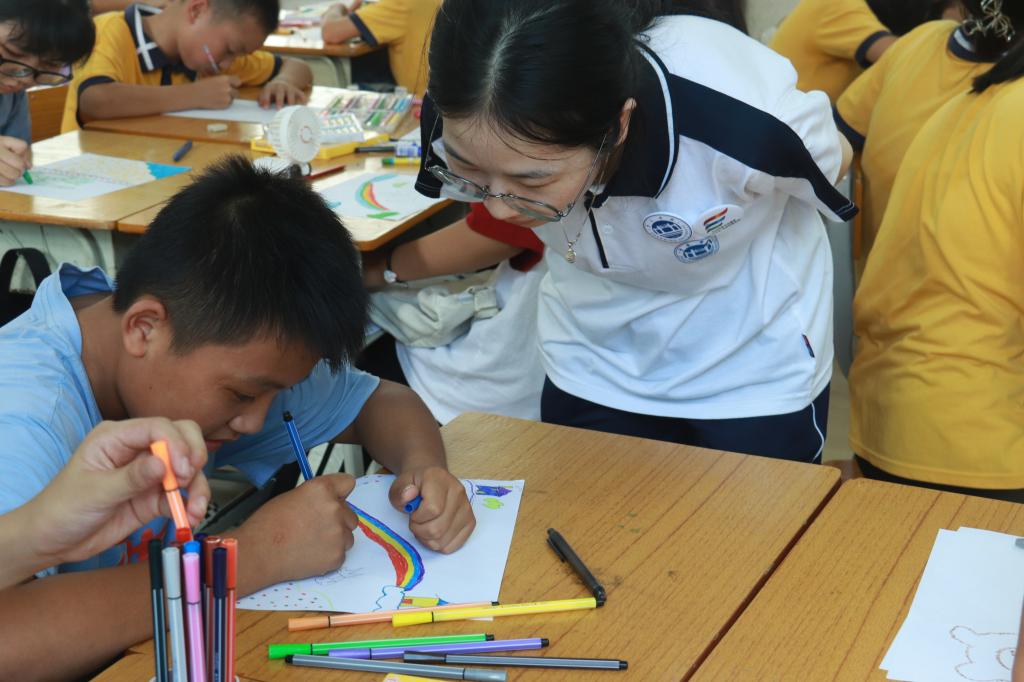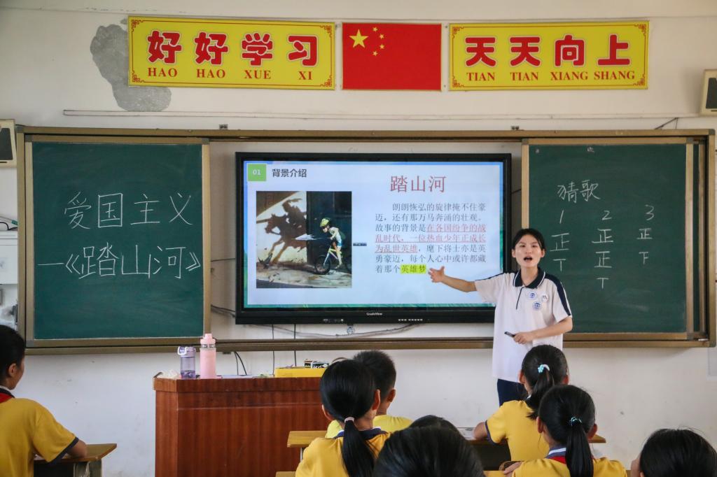当天,公司义教组志愿者们还开设了系列爱国主义教育课程。志愿者们以歌唱、朗诵和绘画等课程形式,为红光小学的员工们带来了丰富多彩的爱国主义教育课堂。在以“传承红色精神,筑牢复兴之魂”为主题的朗诵课上,志愿者们以邓发故事为引,引领员工学习朗诵《少年中国说》,深刻认识到中国的未来需要每个青年去创造。音乐课上,通过播放歌曲《踏山河》(员工版)片段,分析歌曲内涵,用激昂旋律和歌词中蕴含的红色精神引起员工们的共鸣。此外,志愿者们还开设了“我的家乡”美术课,让小员工们通过绘画来表达自己对家乡的热爱之情,厚植爱国爱乡情怀。
