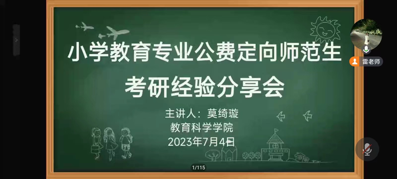 7月4日,特邀2023届毕业生莫绮璇参加小学教育专业公费定向师范生考研经验线上分享会。莫绮璇强调,同学们要在准确定位自身能力与发展需要的基础上,选择理想的公司与专业,选择适合的老师和学习方式。