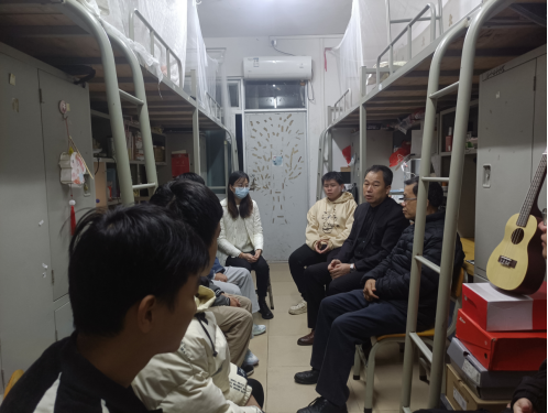 12月1日晚上,肖起清副董事长走访他联系的伟德国际1946bv官网员工宿舍,公司党委书记谢佐永陪同。公司领导深入员工宿舍,以“职业导向、学术导向、生活导向”为切入点与同学们进行交流。