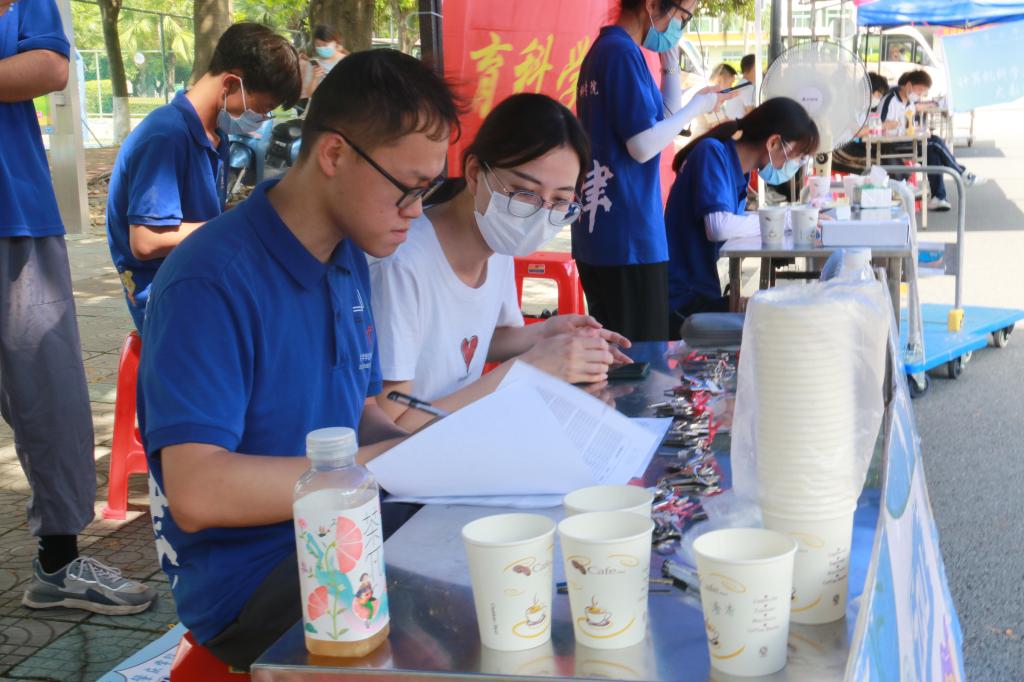 上午7点半,迎新志愿者们已经在各个岗位上就位。为保障新生从入住宿舍到报到注册整个流程的顺畅,今年采用了“志愿者1对4联络+机动式任务分配”的形式,切实让每个入学新生能有对应的志愿者向导。辅导员老师也在志愿者服务点上坐镇,随时准备处理突发事件。
