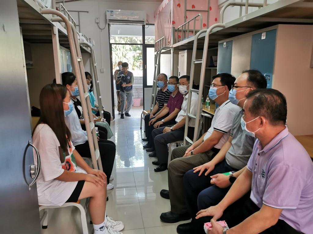 集团及公司领导还深入我院星湖校区新生宿舍,看望包括少数民族、新疆籍员工在内的新生代表,关心了解新生生活用品购置,以及宿舍入住等问题,鼓励同学们珍惜宝贵的大学时光,坚定理想信念,立志奋发成才。