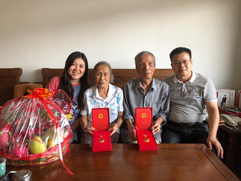 刘桂眉老师系公司第一名退休的老党员,曾任公司前身——教育心理公共课教研室主任,是一名党龄65年的老党员。刘老师感谢公司及公司对老同志们的关怀,夫妇热情地向我们展示了党中央颁发的“光荣在党50年”纪念章。