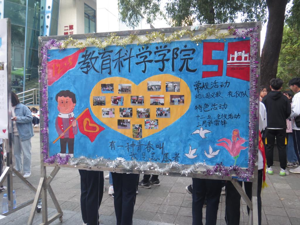 12月5日,“12.5国际志愿者日”文化宣传展板在主校区紫荆校道展出。文化宣传展板以“有一种青春叫我是志愿者”为主题,设计巧妙,结合红飘带、志愿者标志和人物、bevictor1946韦德官网五十周年校庆图标等元素,将幼儿园义教活动、社区创文活动等伟德国际1946bv官网开展的特色志愿活动以宣传画的形式展出。该展板展示了伟德国际1946bv官网特色志愿服务活动的风采,进一步激发砚园学子投身志愿活动的主动性,提升志愿者的使命感和光荣感。