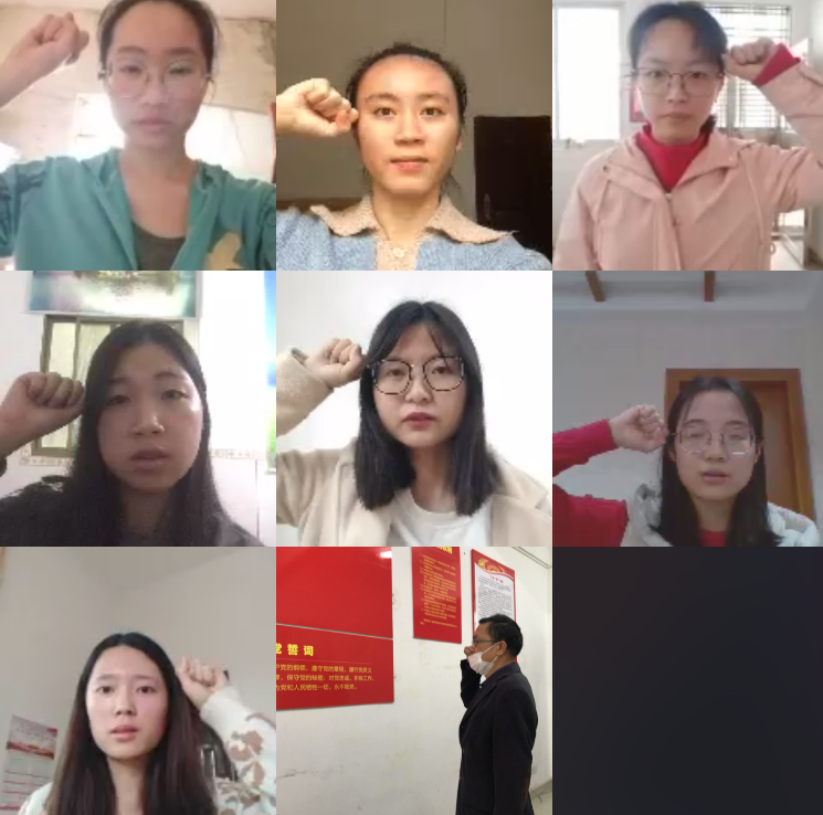 2020年3月31日10:00,伟德国际1946bv官网学前教育专业党支部举行线上专题学习会,深入学习习近平总书记给北京大学援鄂医疗队全体“90”后党员回信重要精神,并进行新一批预备党员入党宣誓仪式。