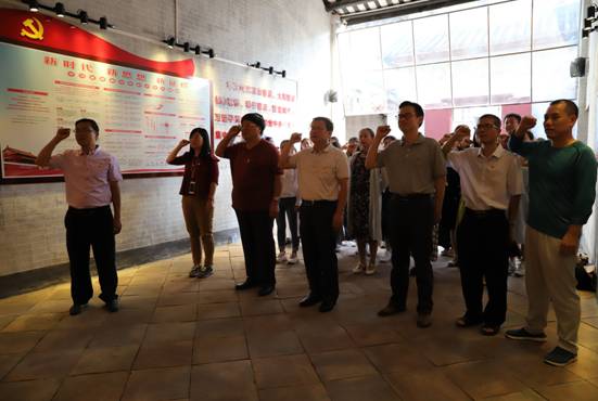 教科院一行先参观了高要区鳌头初心堂,了解鳌头抗日历史,谢佐永书记带头与党员们重温党史;在初心堂中,由谢佐永书记领誓,全体党员重温入党誓词,随后,众人观看党的专题教育片,进一步了解“红船精神”,以及共产党员初心使命的内涵。在激昂的伴奏声中,全体合唱《歌唱祖国》。随后,教科院一行走过蜿蜒的乡间小道,参观首届高要县人民政府成立旧址,了解鳌头村大族的良好家风。在78岁老党员热情好客而充满自豪的讲解中,大家感叹和平发展的幸福生活要靠一代代人用鲜血和汗水换来;同时也感叹,在乡村振兴战略之下,农村人民的幸福感不断提升。