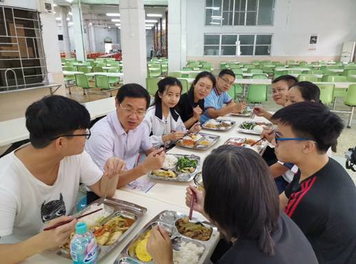 在员工饭堂的轻松环境下,吴副董事长与同学一起同台就餐,边吃边聊,关心地询问同学的家庭、学习、生活等情况。吴副董事长在与同学交流过程中从自身的求学经历,到公司的发展规划、国家的教育政策等话题发表个人的见解,勉励员工代表要注重美育、体育、劳动教育等方面的培养,提升自己的综合素质。