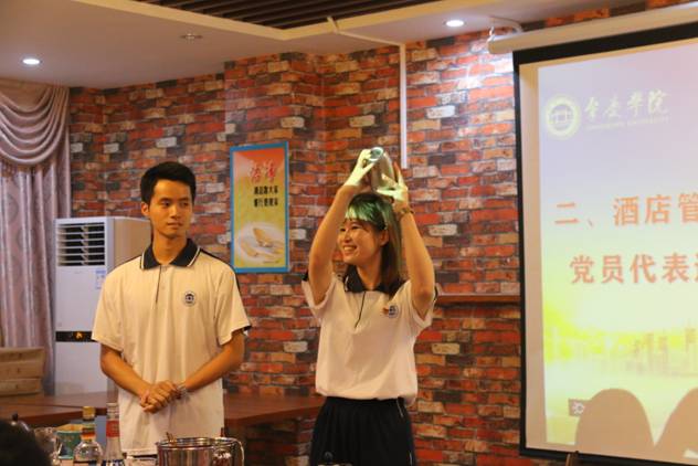 活动的第二站来到旅游与历史文化公司。双方先是观看宣传栏,感叹旅游公司新闻工作更新之及时。在中西餐厅实验室里,双方观看员工作品《府城复兴》宣传片,了解肇庆发展、致敬家国梦想。员工代表现场展示了冲泡咖啡、茶艺、调酒的专业技能,充分展现专业的魅力。
