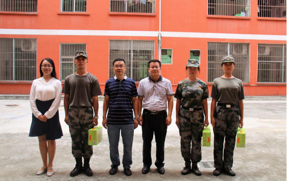本网讯(通讯员 卢巧丹)2018年9月21日上午,公司党委书记谢佐永、公司党委副书记刘远君带领辅导员及新生班主任,依次慰问了主校区和星湖校区的教官和2018级带班党员,激励正在军训的新生们砥砺前行,并为大家提前送上中秋节日祝福。