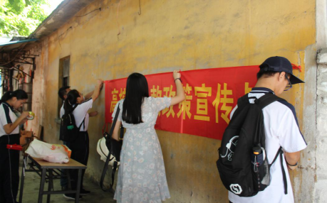 在本次宣传与调研活动中,首先,我们让两名成员在村子中心作定点宣传,并在醒目位置张贴宣传横幅。随后,其余成员采取分组走访的形式对五经里的村民进行助贷宣传和问卷调查。在指导老师的带领下,宣传小组走访了经济困难家庭,通过问卷调查和现场答疑的形式对家长和员工进行资助政策的宣传、讲解。宣传调研工作的开展,也进一步增进了五经里的村民对助学贷款政策的了解,有助于国家出台的相关资助政策能够更加有效地落实。