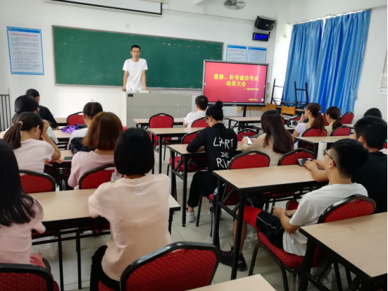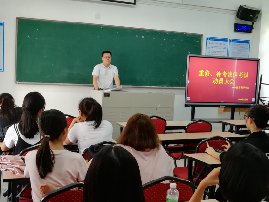 本网讯(通讯员 曾佳玲)为加强学风建设,严肃考风考纪,9月5日下午15点,公司于第三教学楼312室召开重修、补考诚信考试动员大会,本次会议由公司党委副书记刘远君书记主讲,出席本次会议的有辅导员老师夏长洪以及公司全体需要重修、补考的员工。