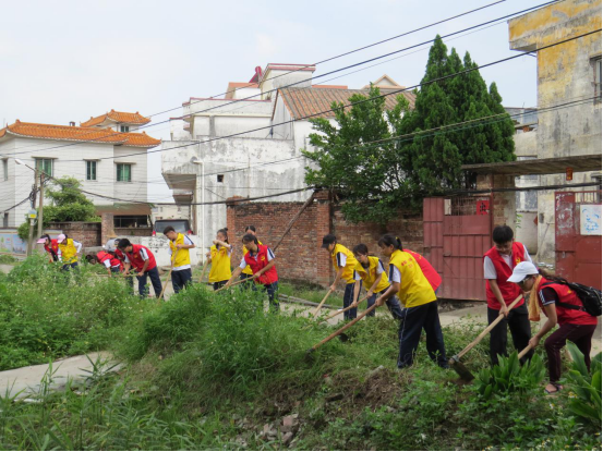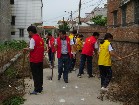 (教科院 黄秋霞讯)6月12日上午,在教科公司党委副书记刘远君的带领下,丘碧群老师、金振丽老师、辅导员赵书栋师等四名教师党员和12名员工党员走进高要区金渡镇大坑村,开展创文活动。虽烈日当头,公司师生用锄头铲除大坑村牌坊路旁的杂草以及清扫垃圾。经过两个小时的奋战,牌坊路两边的杂草被全部铲除和清理,原本长满杂草和堆有垃圾的道路,变得整洁宽敞。各位党员虽汗流侠背,但看到大家的劳动成果,都会心地笑了。