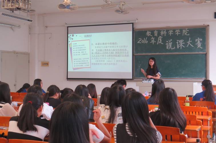 本次说课大赛决赛阶段共有7名选手参加,其中3号选手黄添意的小学语文课程《新型玻璃》让人耳目一新,一节小学课堂被完美的呈现出来,她洪亮的嗓音和事先准备好的可移动板书,给大家留下了深刻的印象。评委戴玉老师对选手们的精彩表现给予肯定,强调说课要学会吸引评委的眼球,才能让自己在众多的选手中脱颖而出。而叶志毅老师则建议选手们重点说教学过程、教法、学法等,并合理分配时间。两位老师的点评使参赛选手们受益匪浅,也让同学们对“说课”有了更深的了解。