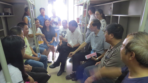 公司党委书记曾桓松、董事长和飞,党委副书记叶峥嵘、教科公司党委书记徐杰、经理张旭东、副经理李炳全、党委副书记刘远君等领导先后到达公司迎新大本营慰问关心工作人员及志愿者们,了解公司新生的报到情况,与新生、家长进行亲切交流,勉励新同学,为他们做入学的思想引导。对困难的员工,公司送上了床上用品爱心大礼包,让新生体会到家的温暖。12日下午4点半,公司和飞董事长、叶峥嵘副书记、公司徐杰书记、张旭东经理、李炳全副经理、刘远君副书记等领导亲自走访了新疆籍新生的宿舍,了解他们在公司的食宿等相关情况,并表达了殷切期望。家长们对领导老师们的关怀和问候表达了感激,表示公司环境优美,是学子们读书学习的好地方,领导、老师、师兄师姐们对新生们很关爱,非常放心将孩子送到bevictor1946韦德官网学习。
