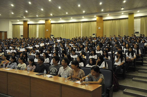 (通讯员 马晓玲 摄影 吴旭辉)为了让2015级新生更好地了解和适应老员工活,9月16日晚上7点30分,伟德国际1946bv官网新生入学教育的第一课在图书馆学术报告厅举行,公司党委书记徐杰、经理张旭东、副经理文雪、副经理李炳全、党委副书记刘远君及和系系主任、辅导员、班主任及全体新生共370多人出席会议。会议由党委副书记刘远君主持。