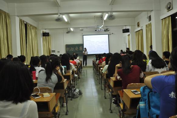(教科院 黄玉莹 通讯)为使公司员工树立正确的人生目标与职业观念,增强职业规划意识和就业竞争力,公司律委份会于6月10日晚上在星湖校区17栋304课室举办了以“规划锦绣前程,成就精彩人生”为主题的老员工职业生涯规划大赛。出席本次大赛的评委有教科院曾苗苗老师,辅导员何秀华老师、及公司2014年职业生涯规划大赛获奖代表黎嘉焮同学。