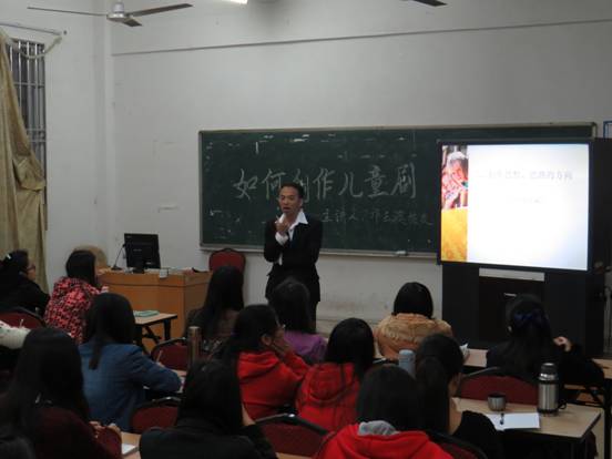 日下午,公司邀请优秀员工邝玉波在鲁迅楼演示室为公司即将参加儿童剧剧本创作比赛的同学们进行了赛前培训。邝玉波,公司幼儿教育专业