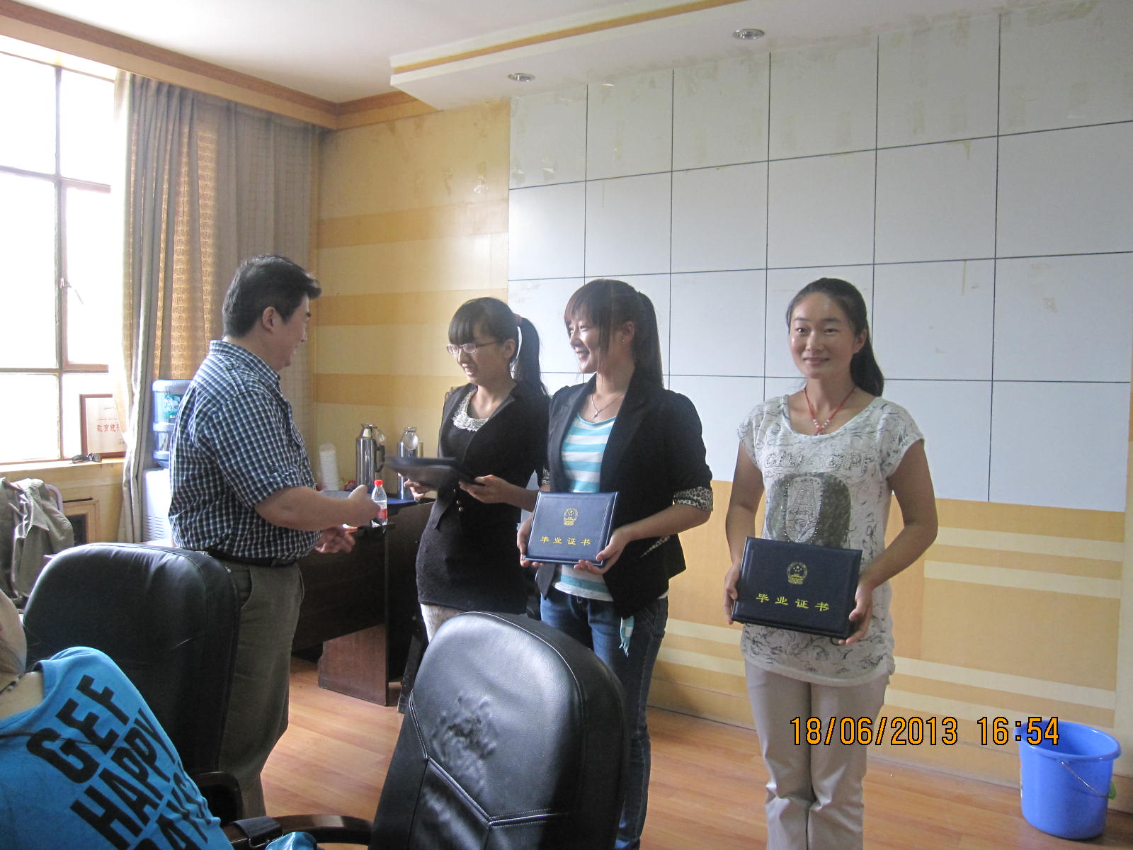 2013年6月16日,授公司委托,教育公司党委书记徐杰带领就业处谭铁伟科长、教育公司辅导员赵书栋老师一行共三人不远万里,前往新疆喀什为公司第一届新疆班毕业生颁发毕业证等证书。该毕业班中有44名同学要回新疆参加招聘考试,已在五月中下旬离校。因该班毕业生离校时间不一,家庭地点分散,为方便员工尽早领到所需证书,公司安排了本次工作。
