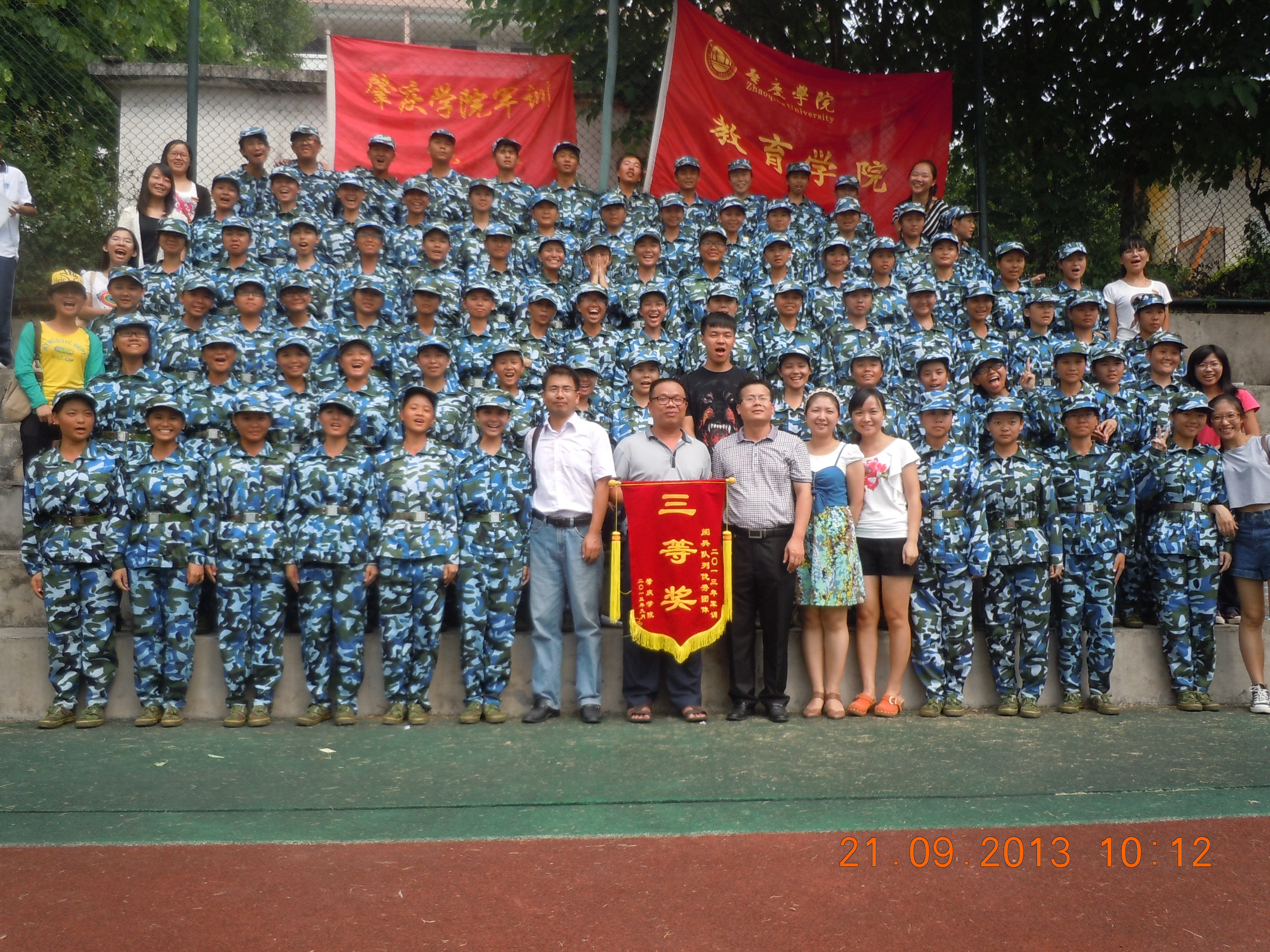 终于,在领导与连长们的亲切关怀下,在教官和连长助理的严格要求下,在全体13级新生的努力下,9月22日的全校阅兵仪式中,公司第六连与第七连均荣获三等奖,为院争光。