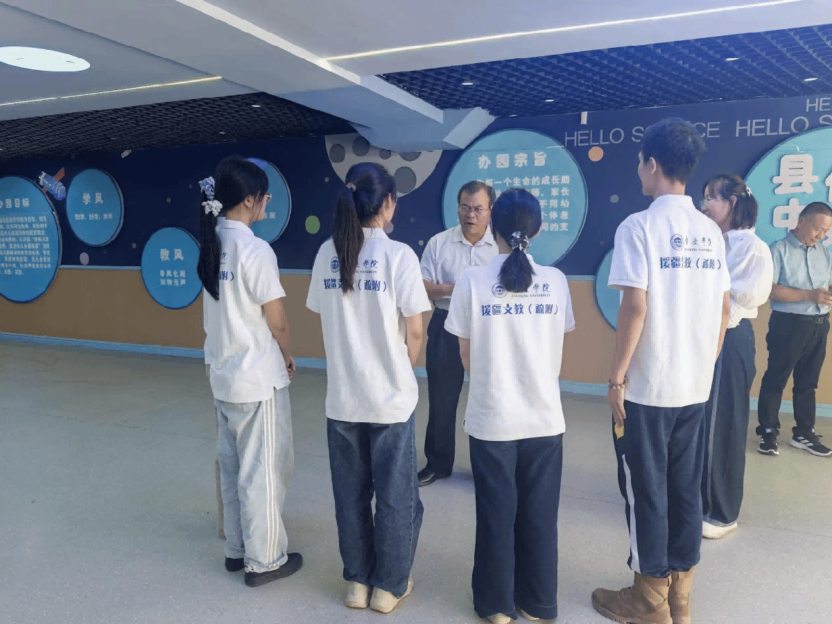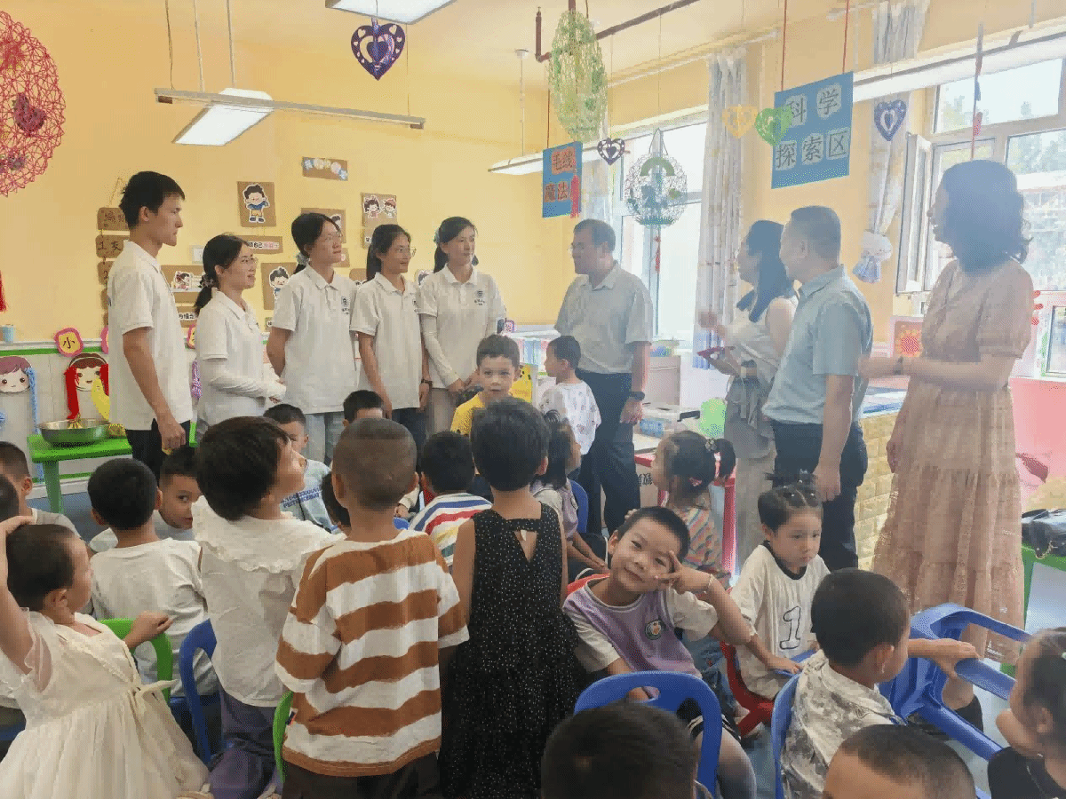 走访期间,李新昌深入幼儿园教室、活动场所和生活区域,细致了解支教队员的教学实践与生活适应情况。在与队员们交流时,他强调:“实习是将理论知识转化为实践能力的重要环节,大家要珍惜在一线的教学机会,虚心向当地教师学习,认真做好每项工作。”他特别关心队员们对新疆气候、饮食的适应情况,叮嘱援疆队员要注意身体健康,并详细询问了课程衔接与论文撰写进度。