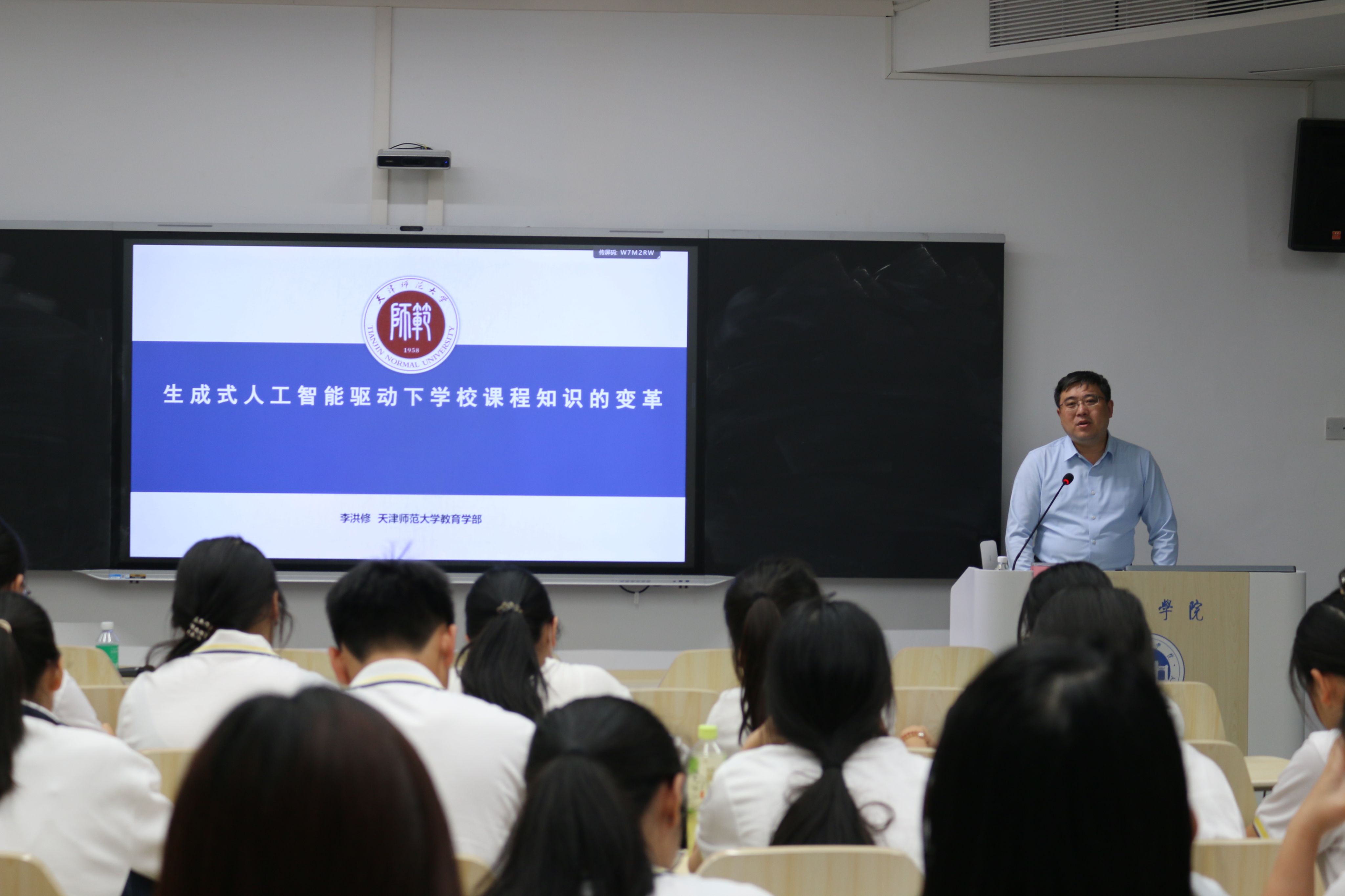 2025年10月26日下午,天津师范大学博士生导师、教授李洪修受邀到公司开展《生成式人工智能背景下公司课程知识形态的变革》学术讲座。公司部分教师及各专业师范生近100余人参加讲座。