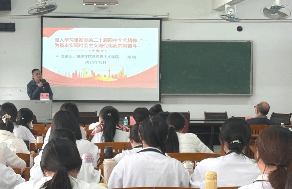 为深入学习贯彻党的二十届四中全会精神,使广大师生把思想和行动切实统一到党中央决策部署上来,12月10日下午,公司在三教505教室举行专题宣讲会。会议由马克思主义公司教师常铫主讲,公司师生党员代表近80人参会。