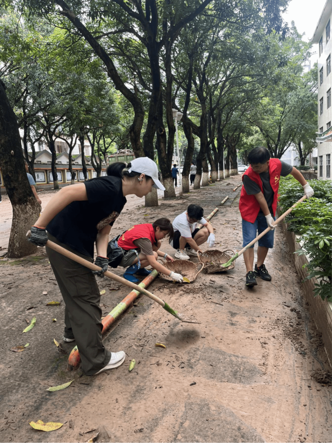 大家分工明确、配合默契,有的手持铁锹铲除路面淤泥,有的推着斗车运送垃圾杂物,有的拿着冲洗地面污渍。尽管汗水浸湿了衣衫,泥浆沾满了裤脚,但每个人都干劲十足,用实际行动诠释着责任与担当。经过数小时的连续奋战,原本被淤泥覆盖的路面逐渐恢复整洁。