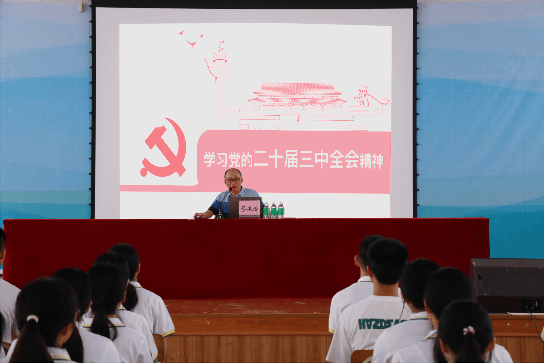 9月9日,公司党委书记蔡振治在星湖校区小礼堂为2024级新生讲授了一堂内容丰富的思政第一课。该课程聚焦于学习党的二十届三中全会精神,目的是引导新生们紧随时代发展的步伐,深入理解党的方针政策,积极主动地学习,奋发有为,自觉承担起民族复兴的重任。