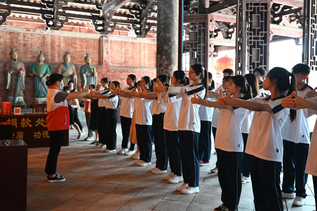 随后,大家来到德庆学宫,这是岭南乃至我国南方现存最古老的孔庙,也是全国重点文物保护单位。师生一行在讲解员的带领下向孔子像作揖行礼,学习拜师礼,大声诵读《论语》片段,感悟孔子的伟大思想和教育智慧。作为今日之学子与未来的人民教师,孔子的思想可以启迪同学们为人师表,将是同学们受用终生的精神财富。