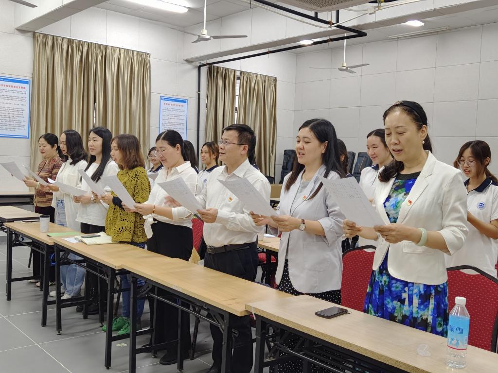 活动其中一个环节是学唱红歌,由支部委员、老员工多声部学习兴趣小组指导老师梁琰带领老师和员工学唱《光荣与梦想》,在旋律与歌声中重温了党的峥嵘岁月,使党史在旋律中展现,初心在音乐中升华,使命在节奏中镌刻。
