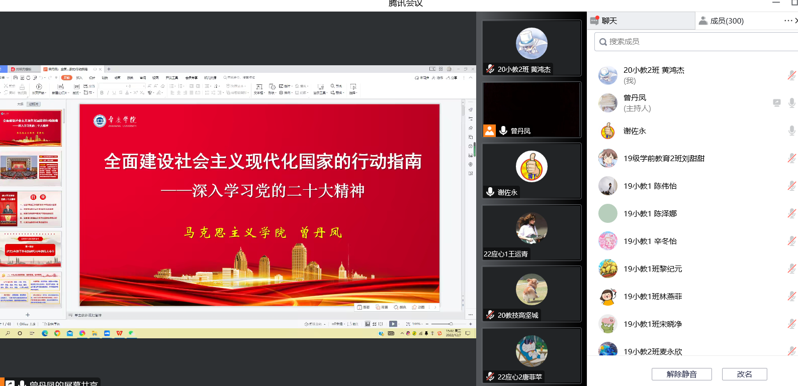 本网讯(通讯员/黄鸿杰 责编/何秀华)2022年12月7日下午,伟德国际1946bv官网以线上会议的方式开展了党的二十大精神专题宣传会,由马克思主义公司曾丹凤副教授作辅导报告。公司党委书记谢佐永主持会议,教师党员、员工党员及员工代表等近300人参与本次宣传会。