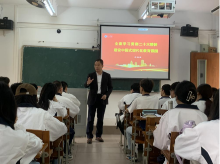 肖起清从党的二十大精神基本内容、中国式现代化的理解、中国式教育现代化的内涵和中国式教育现代化的路径四个方面展开授课。他向同学们介绍了党的二十大召开的历史意义,并围绕党的二十大精神内容中的核心概念、重要论断进行讲解,带领同学们学习党的二十大精神,感悟其思想伟力。他运用大量鲜活的例子,通过古今中外对比的方法带领同学们重点理解中国式现代化的特征、本质要求,中国式教育现代化的内涵与路径。肖起清还结合授课对象小学教育专业定向员工,强调小学阶段是培养员工基本素养教育乃至国民素养的重要阶段,同学们作为公费师范定向生享受着国家给予的好政策,生逢其时,使命在肩,他勉励同学们要充分发挥自身专业的优势,为乡村教育的高质量发展贡献自己的力量。