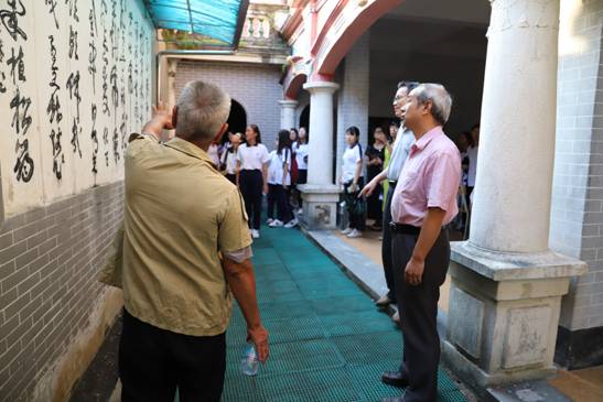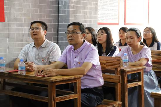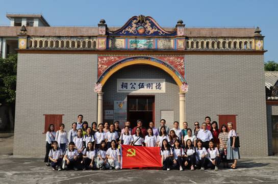 教科院一行先参观了高要区鳌头初心堂,了解鳌头抗日历史,谢佐永书记带头与党员们重温党史;在初心堂中,由谢佐永书记领誓,全体党员重温入党誓词,随后,众人观看党的专题教育片,进一步了解“红船精神”,以及共产党员初心使命的内涵。在激昂的伴奏声中,全体合唱《歌唱祖国》。随后,教科院一行走过蜿蜒的乡间小道,参观首届高要县人民政府成立旧址,了解鳌头村大族的良好家风。在78岁老党员热情好客而充满自豪的讲解中,大家感叹和平发展的幸福生活要靠一代代人用鲜血和汗水换来;同时也感叹,在乡村振兴战略之下,农村人民的幸福感不断提升。