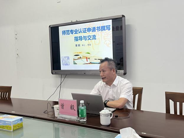 曾毅指出,申请审核、自评辅导、认证考查是专业认证三个重要的工作环节,需要始终落实“主线”和“底线”要求,才能保证专业认证工作的质量。随后,他结合教育部专业认证指标体系,详细解读了专业认证的核心要求与评估要点,并从专业认证申请书撰写要求、认证主线与底线审核要点、专业认证经验分享三个方面进行梳理和辅导。曾毅强调,申请书及其材料审核完善与否是判断该专业能否接受认证的“入关口”,务必强化以毕业要求为核心的“主线”要求以及评价改进的“底线”要求,把握审理的尺度,做到“守门槛、把四关、查五证”,紧扣目标重点,针对各专业不同的课程目标确定相应的考核材料。