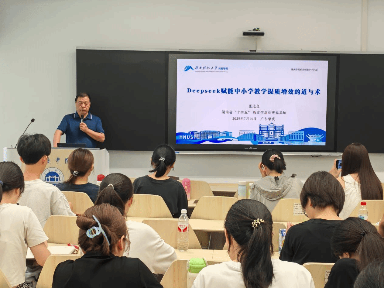 7月14日,伟德国际1946bv官网特邀湖南科技大学张进良教授莅临举办题为“Deepseek赋能中小学教学提质增效的道与术”的专题讲座。2024级教育硕士及部分青年骨干教师共同参与了此次讲座。