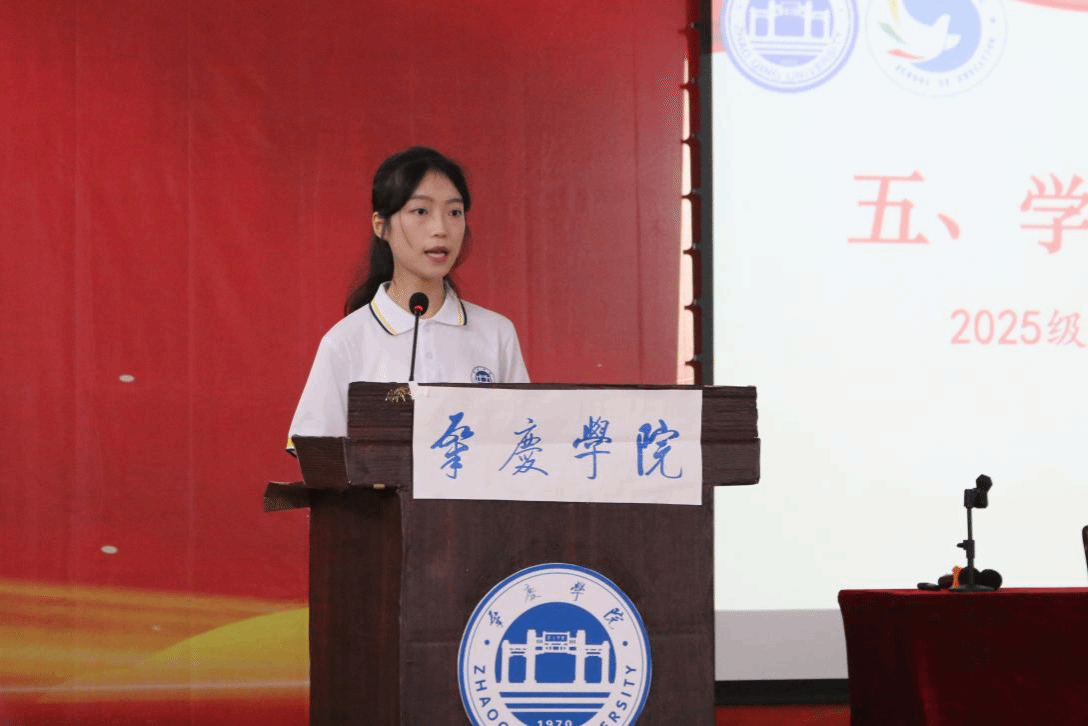 2025级应用心理学1班的雷艺丹作为新生代表发言,表达了对老员工活的美好憧憬。她倡议同学们要博学笃行、勤思善问,迅速适应老员工活节奏,全面提升自身综合素养,争当有理想、敢担当、能吃苦、肯奋斗的新时代优秀青年。