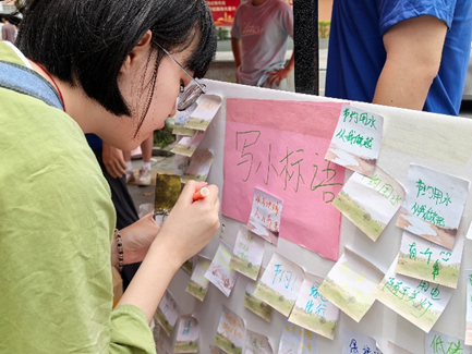 (图为 活动现场参与环保标语设计的照片 陈浩林摄)