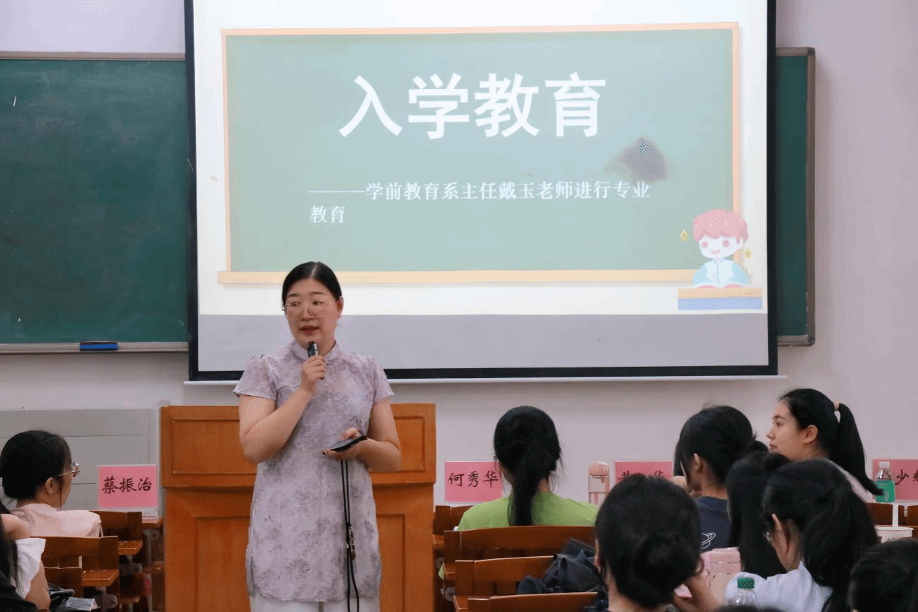 开学典礼结束后,学前教育系主任戴玉老师为专升本新生开展专业教育。她强调,同学们应从三个方面着手:一是清晰定位,结合自身情况做好未来规划;二是做好万全准备,在专业知识学习、技能提升等方面下足功夫;三是树立多元就业意识,拓宽就业视野,为自己的职业发展创造更多可能。