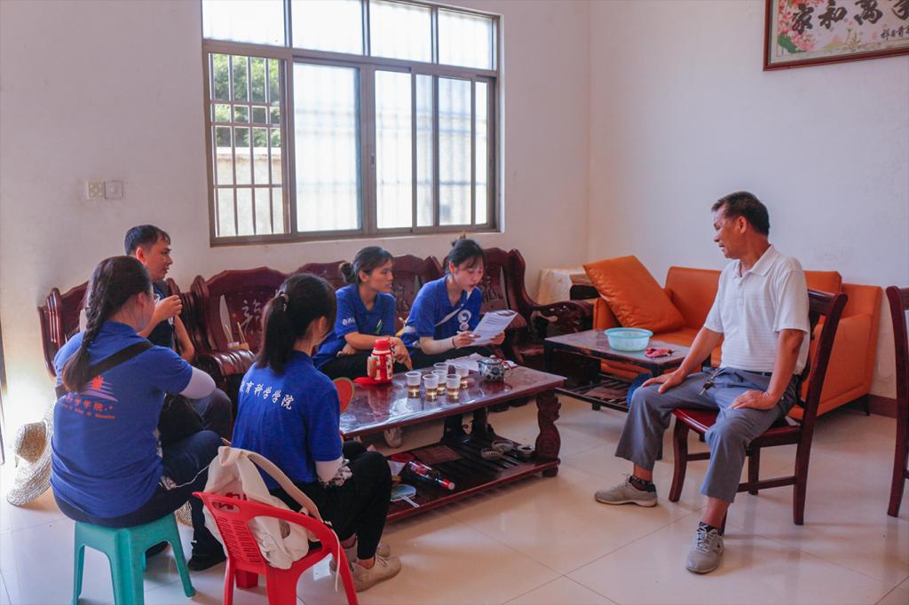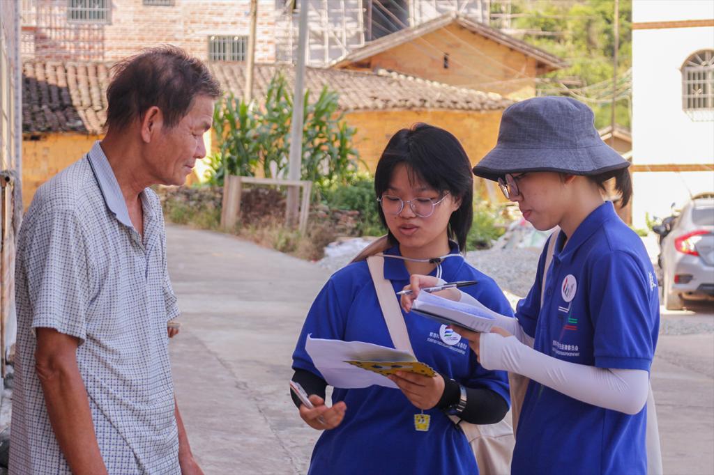调研组成员每天迎着清晨第一缕阳光向各个村落出发,踏着夕阳的余晖结束一天的调研之旅。他们沿着崎岖的乡间小路,深入到村庄中、街道上。赤坑镇中村与村之间相隔较远,大部分青壮年外出打工,镇内常住人口较少,房屋空置情况较为严重,调研数据采样遇到困难。现居民多为老人和小孩,普通话普及范围相对较窄,尽管沟通交流存在障碍,调研组成员却从不气馁,坚持每日走访,通过深入访谈和发放问卷的形式充分利用现有资源,不放弃任何一个扩充数据样本的机会。