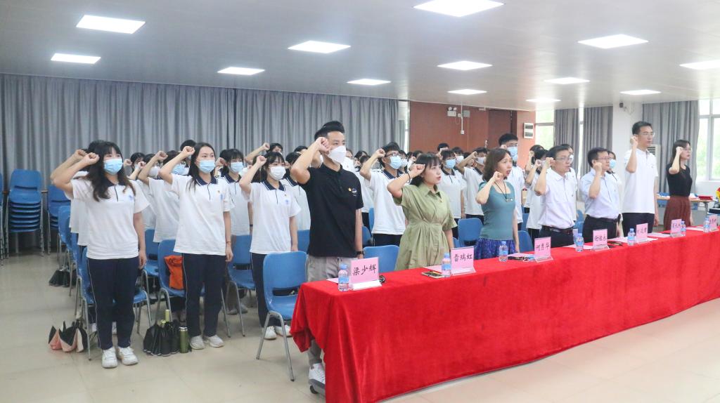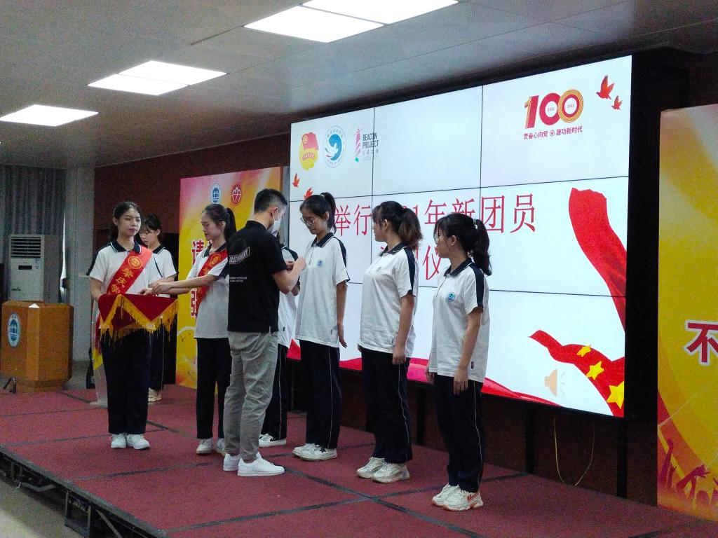 大会进行庄严而隆重的入团仪式,由公司团委书记梁少辉为新团员代表逐一佩戴上团徽。黄婷玉同学带领现场全体师生重温入团誓词,并作为新团员代表发言,她表示往后会将一名优秀的共青团员的准则铭记于心,创先争优,敏于求知。