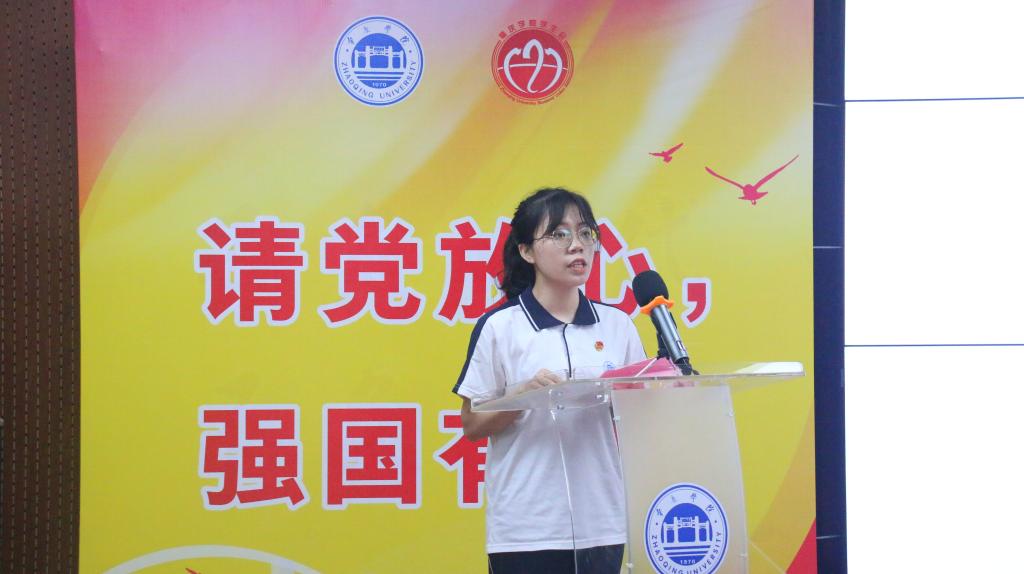 荣获广东省优秀共青团员荣誉的陈晓丹同学进行经验分享,她回顾了大学三年以来的学习历程,她表示,在遇到逆境时,党支部是她坚强的后盾,是照亮她前路的灯塔。过去的荣誉将激励她对未来提出更高的要求。她勉励与会的员工骨干们要牢记服务同学的宗旨,发挥先锋模范作用。