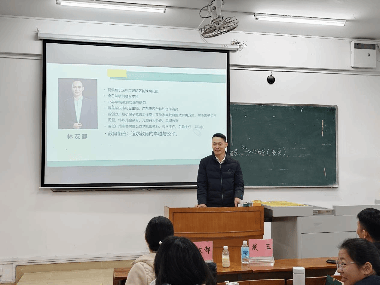 12月28日,公司特邀深圳市光明区韵雅幼儿园副园长林友都、龙岗区坂田街道金色半山幼儿园副园长李俊,为学前教育专业的同学们带来了一场互动式讲座。