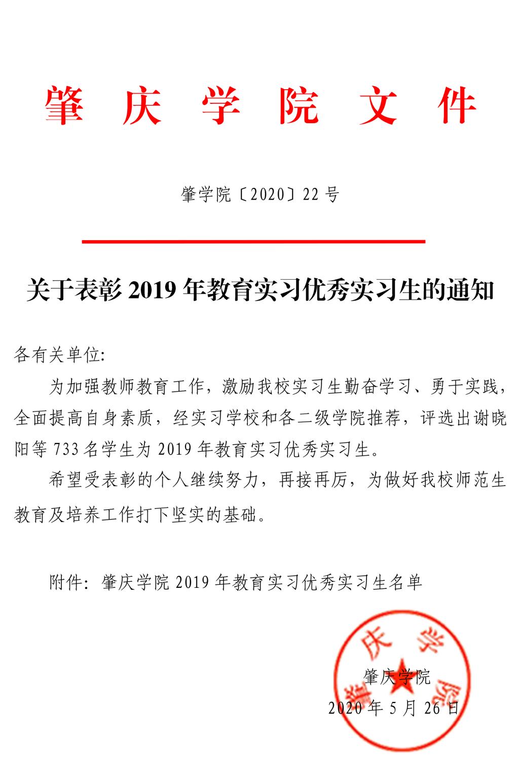 肇公司22号关于表彰2019年教育实习优秀实习生的通知