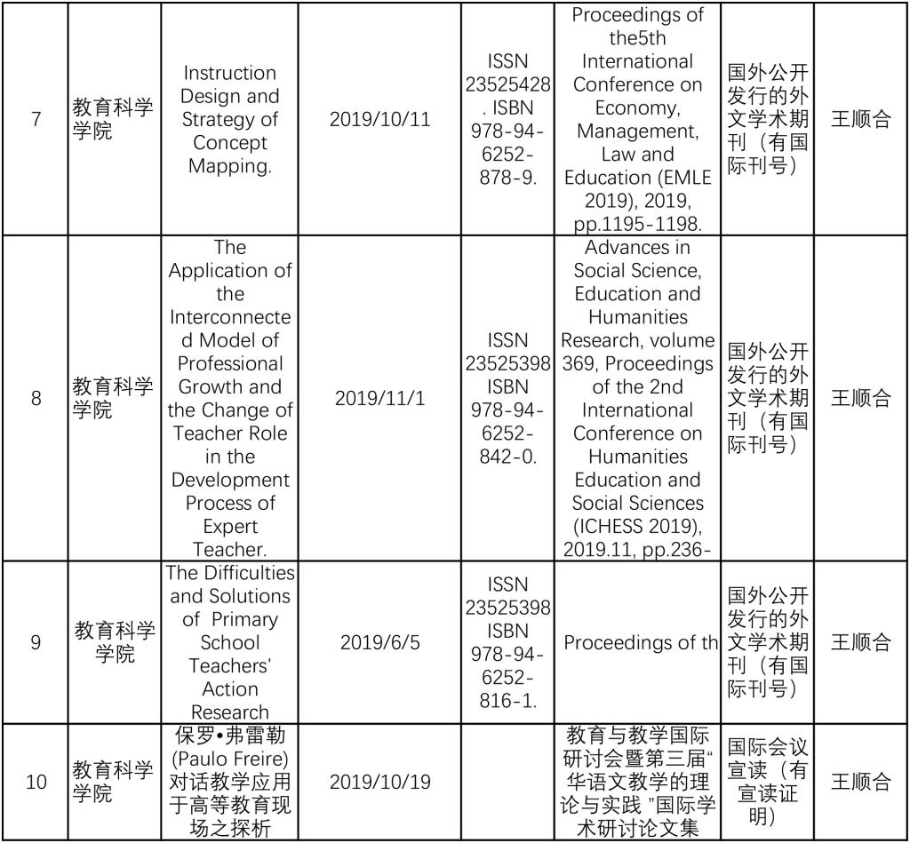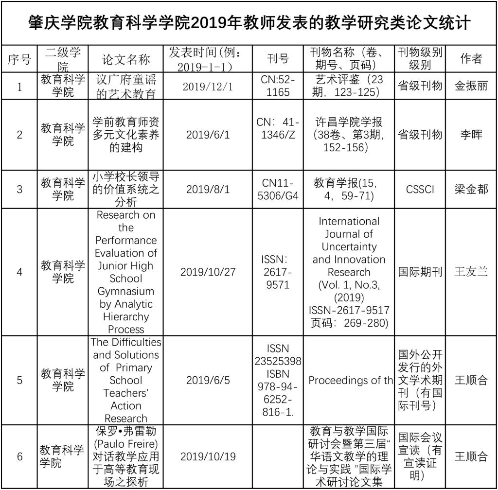 伟德国际1946bv官网2019年教师发表的教学研究类论文统计